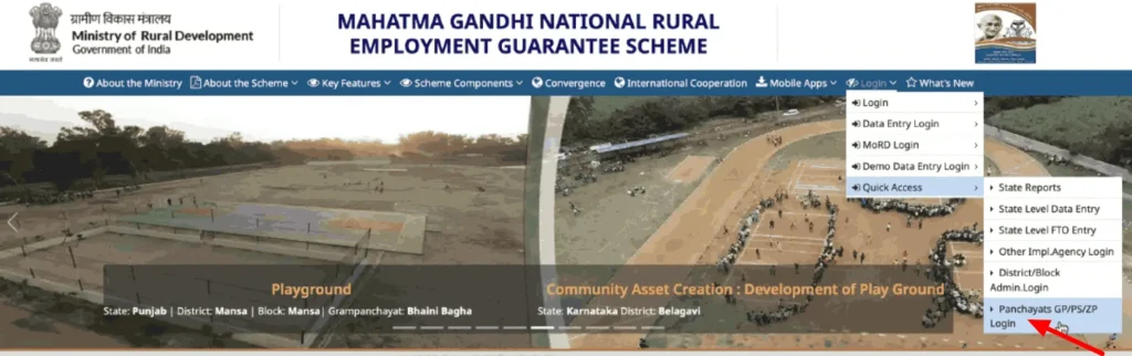 - इसके बाद खुलने वाले ड्रॉप-डाउन मेनू में से Panchayats GP/PS/ZP Login पर क्लिक करें।