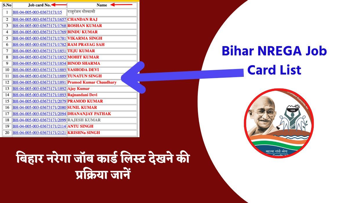 बिहार नरेगा जॉब कार्ड लिस्ट (Bihar Job Card List) उन सभी ग्रामीण परिवारों की एक आधिकारिक सूची है जिन्हें मनरेगा योजना के अंतर्गत कार्य करने का अधिकार मिला हुआ है।