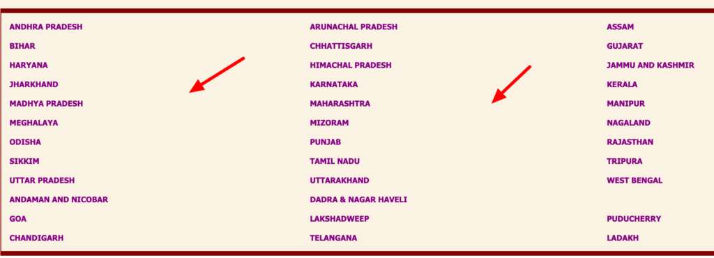 - जिसके बाद आपकी स्क्रीन पर सभी राज्यों की लिस्ट खुल जाएगी, जिसमे से आप अपने राज्य के नाम पर क्लिक करें.